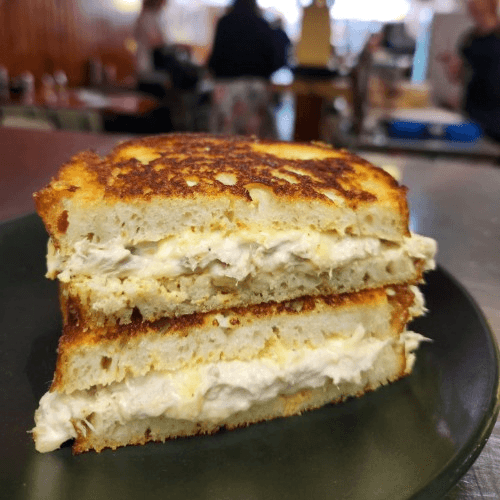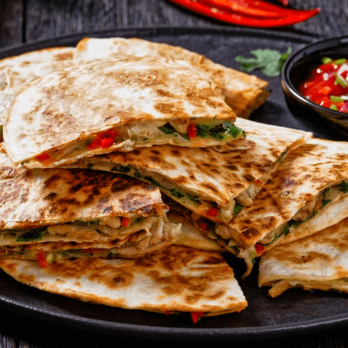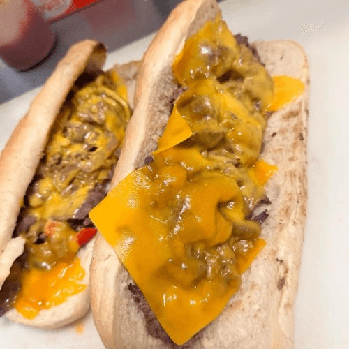 Grilled steak, melted cheddar, sautéed onions, peppers