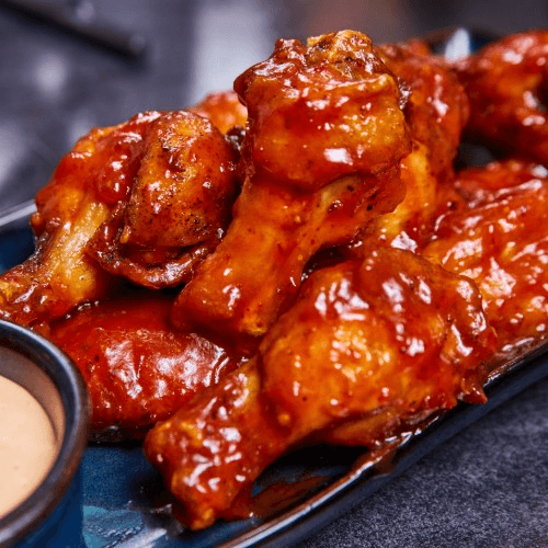 Chicken cutlet, buffalo sauce, lettuce, blue cheese dressing